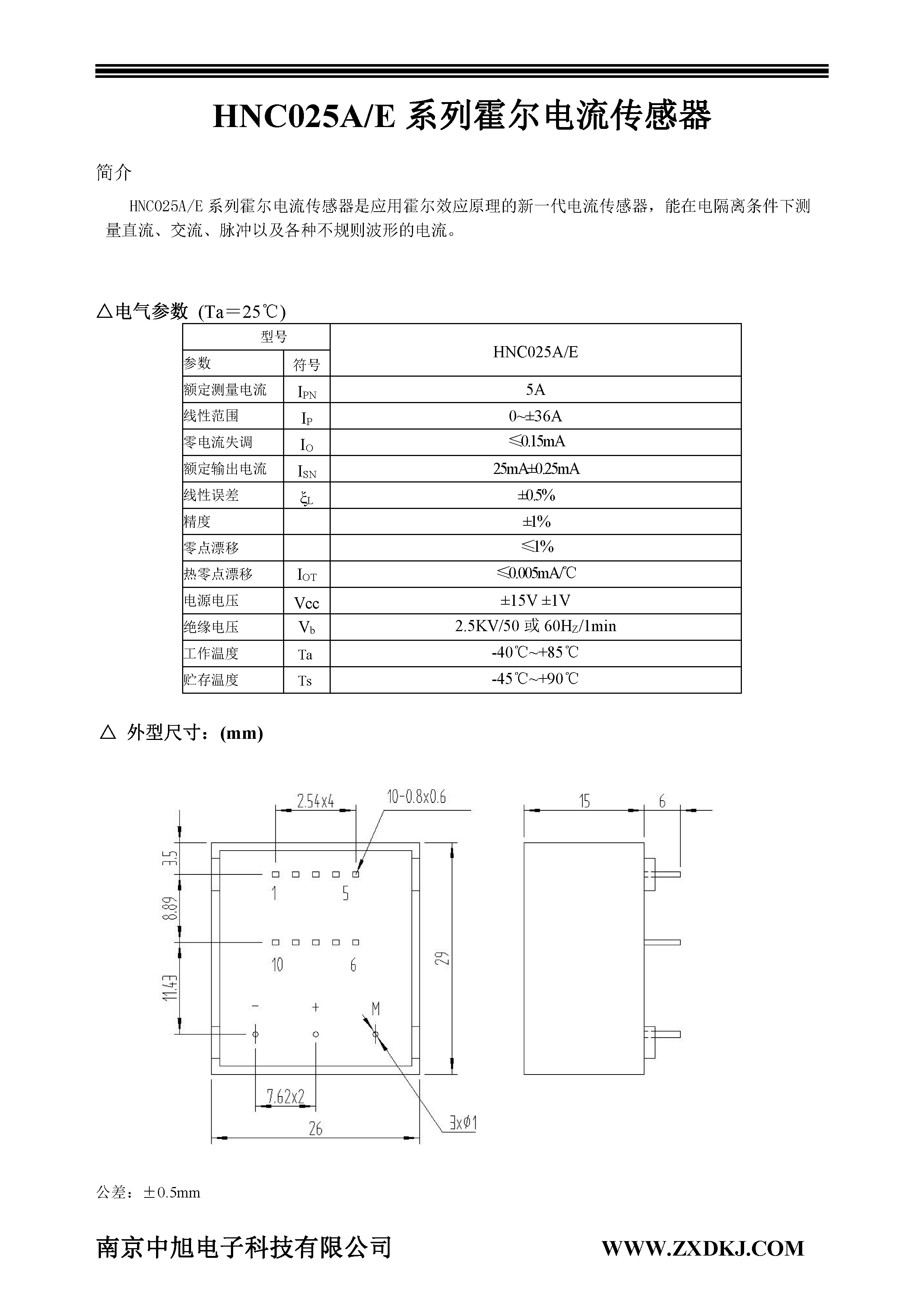 HNC025A系列霍爾電流傳感器是應(yīng)用霍爾效應(yīng)原理的新一代電流傳感器,能在電隔離條件下測量直流、交流、脈沖以及各種不規(guī)則波形的電流。